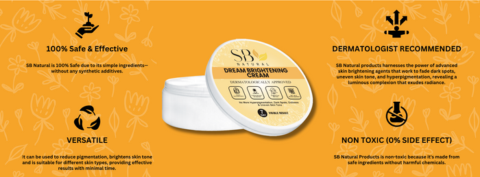 SB Natural Brightening Cream harnesses the power of advanced skin brightening agents that work to fade dark spots, uneven skin tone, and hyperpigmentation, revealing a luminous complexion that exudes radiance.